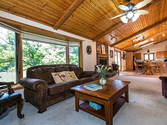 ARE YOU KIDDING ME???? Year round lake home on a flat lot with a machine shed for boat storage?????? Not in Flood plain! Walk out ranch with three bedrooms with 4th non conforming bedroom in basement. Open floor plan kitchen living room complete with gas fireplace! Concrete patio on walk out and raised deck off kitchen for morning coffee! Master bedroom features wonderful en suite! All on one floor living or invite guests to stay in your lower level complete with full kitchen and private bath ! So large two couples could buy and each have their own floor! You can easily create a beach area for lots of fun in the sun days! Oh and guess what is very rare at Lake Delhi??? You have a machine shed on you lot to hold all your toys and still room for your cars!