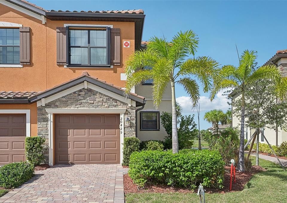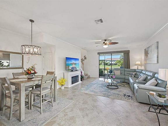 This charming corner townhome is designed for both comfort and style, starting with a welcoming paver walkway that leads to your private garage and front porch. Step inside and you’re greeted by an open-concept living area that feels bright, inviting, and perfect for both relaxing and entertaining. The living and dining spaces flow easily to a covered, screened lanai with pond views — complete with an added shade to block the afternoon sun, making it the perfect spot for morning coffee or an evening glass of wine. The kitchen features granite countertops, stainless steel appliances, and a breakfast bar that keeps you connected while cooking or hosting. Upstairs, plush carpet leads you to the primary suite with two walk-in closets, dual sinks, and a large walk-in shower. Two additional bedrooms offer flexibility for guests, a home office, or hobbies, and share a full bath. You’ll also love the convenience of the upstairs laundry closet, generous storage throughout the home, and peace of mind with a Ring camera already in place. For added value and security, all windows and doors are protected by hurricane shutters just installed in September 2025. Living in Gran Paradiso means more than just a beautiful home — it’s a lifestyle. This 24-hour guard-gated community offers an incredible array of resort-style amenities, from the sparkling pool and fitness center with classes, to pickleball, tennis, and basketball courts. The clubhouse has something for everyone, including a library, craft room, billiards, ping pong, card rooms, plus steam and sauna facilities for total relaxation. With its ideal location in Venice, this home delivers both tranquility and convenience. Don’t miss the chance to call this exceptional townhome your own — the Gran Paradiso lifestyle is waiting for you!