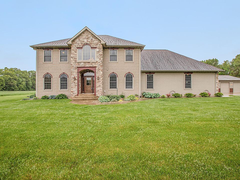 Once you step foot on this property, you'll never want to leave. This 6 bed, 4 full/2 half bath luxurious home rests on a sprawling 40 acres w/ a 40x60 pole barn. With over 6000sqft, this home includes an attached 2+ car garage w/ an expansive finished basement, new carpet, and provides all the space you'll ever need. The main level features a mudroom entryway w/ access to the kitchen, formal dining room, living room w/ a gas fireplace accentuated w/ stone from floor to ceiling, and master suite w/ private bath & walk-in closet. Upstairs is 4 additional bedrooms w/ 2 baths and a bonus room. The pole barn has 3 12ft overhead doors & a 15x40 finished section w/ a bar & wood burning fireplace. Relax in the 3 season room or on the back deck overlooking the beautiful property.