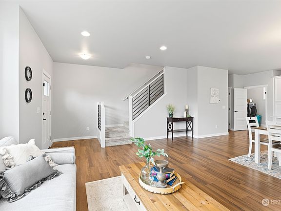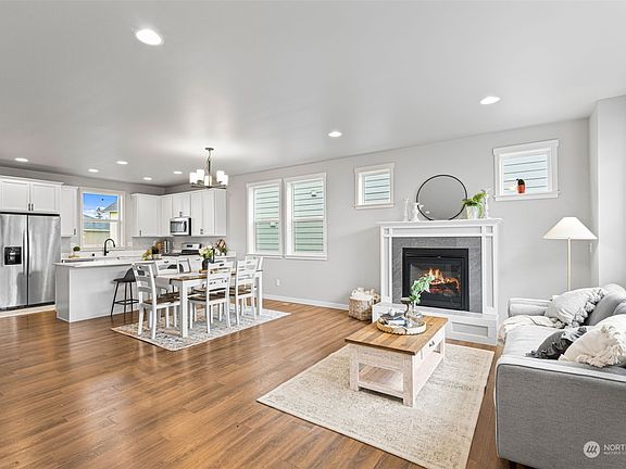 Nearly new 4-bedroom beauty. Open concept, gorgeous finishes, low maintenance--the trifecta! A striking raised tile hearth and gas fireplace create a focal point in the comfortably open main floor. The chef’s kitchen is a dream w/ tall white soft-close cabinets, sleek quartz countertops, & stainless steel appliances. Primary bedroom: dimmable lights and walk-in closet. The versatile 4th bedroom can sleep multiple people or operate as any sort of bonus room you need. Laundry room/mud room near the garage adds convenience to your daily routine, and the beautiful staircase railing adds an extra touch of luxury. Enjoy low-maintenance living with lawn care and a sprinkler system included in the community dues. This dead-end neighborhood is rad!