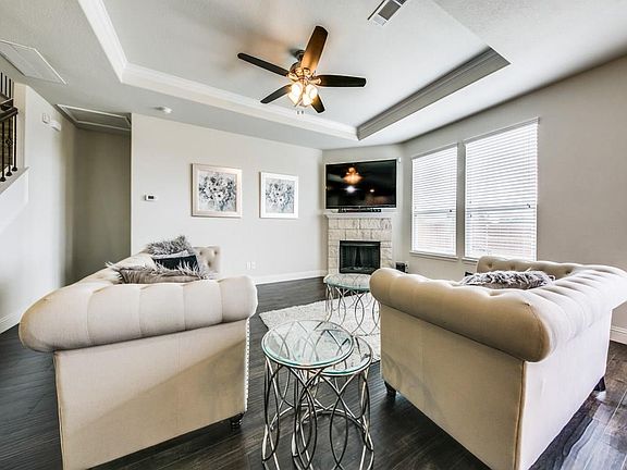 Beautiful home in popular Devonshire Village! Built in 2017 using brick & stone cladding for aesthetically pleasing effect! Unlike new builds--empty shells--this home is completely FINISHED with window treatments, recessed lighting, soft colors & dark wood floors. Modern Kitchen features QUARTZ counters, mosaic TILE backsplash, STAINLESS appliances & large ISLAND with Bkfst Bar. Kitchen opens to cozy Living room w-stone fireplace & nearby Dining. Split bedroom floorplan: Master & Study down, Game Room & other bedrooms up. All bedrooms have Walk in closets. Tasteful LANDSCAPING, sunny patio & grassy yard for entertaining, & you can also enjoy Amenities like outdoor amphitheatre, clubhouse, pool & playground.