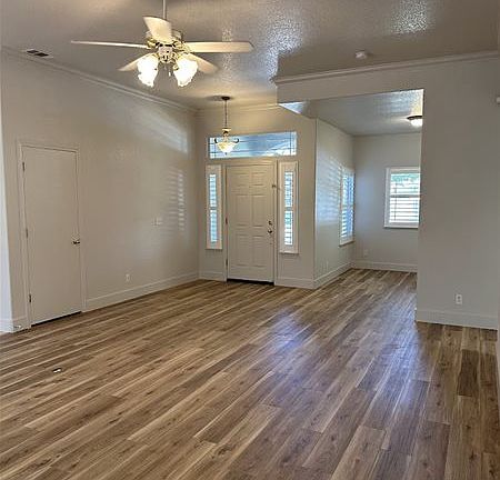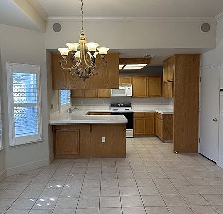 Single story 3 bedroom 2 bath home with all new interior paint throughout, new laminate flooring at living room, baths and bedrooms! Kitchen with tile counter tops, tile flooring, new dishwasher, disposal, dining bar and electric range. Primary bedroom with ceiling fan and access to the backyard patio. Primary bathroom with double sinks and a new quartz shower surround. Guest bathroom with an all new tub shower combo with a quartz surround! 2 car garage with opener. Professionally landscaped front and backyards. Yard service is included. Large backyard patio area. Centrally located next to the park, major shopping center and highway 99.