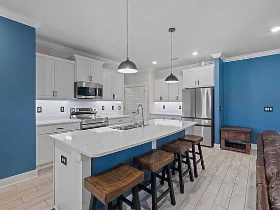 Welcome to this beautiful 3,159 square foot craftsman style home located in Water's Edge subdivision in Gulf Breeze. This home features 4 bedrooms, 3 bull baths, and a huge bonus/flex room and a 3 car garage! As you enter, the foyer welcomes you into this split bedroom, open floor plan home with plenty of room for entertaining, and exquisite features and tons of character such as: crown molding, granite countertops in kitchen and baths, wood-look tile through out the common areas, stainless steel appliances with staggered white shaker style, upgraded cabinetry. On the front left of the home, there are 2 bedrooms that share a full bath. The large and private primary suite has tray ceilings with crown molding. The primary bath has a double vanity with granite tops, tile shower with a frameless glass door, drop in garden tub with tile surround and a huge walk in shower. The covered back porch has tons of room for entertaining and a yard large enough for a pool and outdoor entertainment area. The right side of the home features a laundry room, and pantry just off the 3 car garage. Behind this is a guest suite, complete with another full bath. Upstairs, you'll find a massive 5th bedroom or flex room that offer almost 600 square foot of living space. This home is in the Gulf Breeze School District, and is convenient to Highway 98, Hurlburt Field, NAS Pensacola, Whiting Field, the I-10, and the sugar-white beaches.