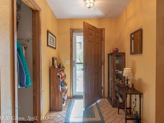 2043 S Glenn Ave, Springfield, MO 65807. Great curb appeal! Newly trimmed treed lot with dogwood in bloom! Motion detector lights. Clean, bright home with 2 new storm doors for added daylight into home. Walk into large living room with raised ceiling, shelving, fireplace and outdoor view as well as access to the back yard and large deck. Kitchen allows ample room to work and a view from the window over the sink. Enjoy meals in the well lit dining area. Master bedroom has walk-in closet and master bathroom has walk-in shower. Level back yard is privacy fenced. Close to shopping and restaurants. Make this home yours for comfort and a great opportunity for outdoor entertaining!