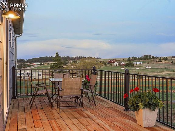 Serene and picturesque Black Forest rancher on almost 6 acres of lush green meadow in award winning School District 38! Almost 2,600 square feet and move in ready with 4 bedrooms, an office, 3 baths and finished walkout lower level. No covenants or HOA and zoned for horses, chickens and other animals. New back and front deck with metal railings, central air conditioning, new lighting throughout most of the home, updated baths and kitchen, hot tub hook-up w/ pad and privacy surround, chicken coop and fenced backyard. High speed internet available. Very convenient location in desirable Elk Creek Ranches located just over 2 miles from Highway 83 and Countyline Road intersection allowing you quick access to Denver, Monument or Colorado Springs. Beautiful and well appointed kitchen with slab granite counters, hickory cabinetry, subway tile backsplash, stainless appliances and a walk-out to the back deck. Welcoming great room with vaulted ceilings, wood accent wall w/ fireplace, and newer luxury vinyl plank flooring. Private primary suite w/ walk-in closet, double door entry and an updated primary bath w/ granite double vanity and oversized and remodeled shower. The finished walk-out lower level features two additional bedrooms, a bath, large laundry room, finished storage room and a spacious family room which walks out to the back yard and lower level patio. Outbuilding and RV friendly. Energy efficient vinyl windows. Domestic well into Dawson Aquifer. Within ten minutes of Kings Deer Golf Course. Great access to I-25.