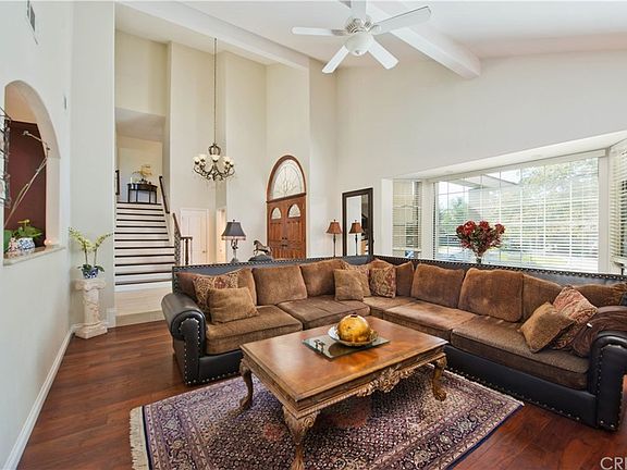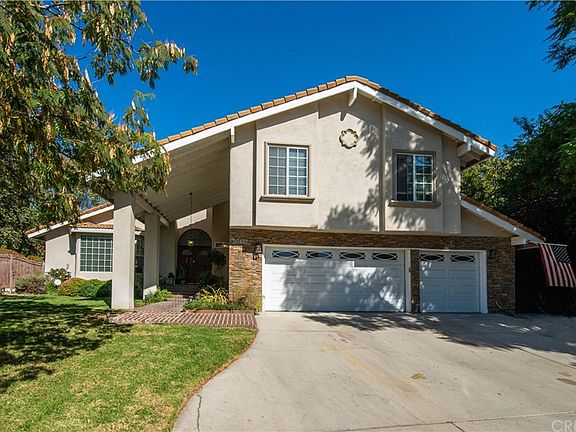 Welcome to this completely updated, IMMACULATE private, saltwater pool home located in the highly desired neighborhood of Rancho De Caballeros. Vaulted ceilings in the living room and entry are sure to impress. This beautiful home features an updated kitchen with granite counter tops, stainless steel appliances and a massive custom center island. French doors off of formal dining room open up to the very private, LARGE, lush backyard. Sunken den features wainscoting panels, granite fireplace and a large wet bar. Downstairs you will find additional bedroom and bath (w/ a separate guest bath). Master suite features vaulted ceilings, a separate sitting area, balcony, large walk in closet, double vanity and a jetted tub! Rear yard backing to horse trail and hills, allows for a very private & exclusive feel. Community features horse trails and 2 FULL size TENNIS COURTS! Walking distance to Porter Ranch Vineyards Shopping Center with Whole Foods, Guss' BBQ, a Movie Theater, and MORE conveniently located nearby! Easy access to the 118 fwy!