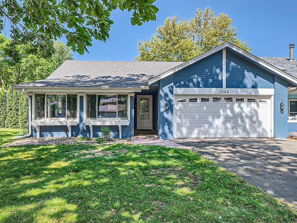 Lovely move-in-ready twin-home with all living facilities on one level and located in a quiet cul-de-sac. This two-bedroom two bath home features a vanity area in the master suite with large walk in closet and main floor laundry room. There is a 3-season porch off the kitchen to sit and enjoy your morning coffee. Brick fireplace in the cozy living room with a fabulous deck. There is a finished basement that can be used as an additional family room or office space. There is also a large storage room in the lower level, and even more storage in the utility room. Home is located near shopping, park & restaurants and high-ways! A must see!
