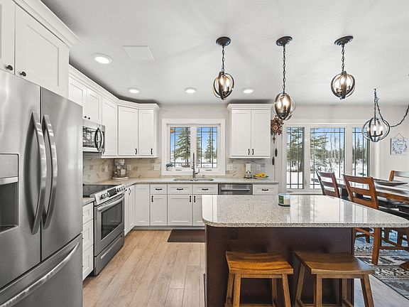 Welcome to 2044 Aaron Avenue, a stunning two-story home built in 2019 and thoughtfully designed for both function and style. Located just minutes from North Pole conveniences, this 3-bedroom, 2.5-bathroom home sits on just under an acre, offering privacy, space, and a high-end living experience. As you step through the front door, you're immediately struck by the dramatic two-story wall of windows that frames the backyard — a feature that creates an incredible sense of openness and floods the living space with natural light. The custom-designed entryway opens into a spacious living room with soaring ceilings and a large wood-burning fireplace that anchors the space with warmth and character. The layout follows an L-shaped open concept, blending the living room, dining area, and chef’s kitchen into one cohesive space. The kitchen is a showstopper, featuring crisp white cabinetry, solid granite countertops, a sleek tile backsplash, and stainless steel appliances. Whether you're hosting a casual brunch or prepping for a full dinner party, the adjacent dining area easily seats six and offers direct access to a covered grilling deck. The deck itself is large enough for lounge furniture, multiple grills, and year-round outdoor enjoyment. Just off the kitchen, you'll find a walk-in pantry, under-stair storage, a convenient work nook, and a stylish half bath that leads to the two-car garage housing all top-of-the-line, well-maintained utilities — still young with plenty of life ahead. Head upstairs to find all three bedrooms and the laundry room, thoughtfully arranged to maximize privacy and comfort. The guest bedrooms sit toward the front of the home, while the spacious primary suite is tucked at the rear, offering peaceful views of the backyard. Designed with comfort in mind, the primary suite easily fits a king-sized bed, larger furniture, and more. The attached en suite bathroom features double vanities, premium finishes, and a beautifully tiled custom shower for a spa-like experience. The carpeted stairs and upper hallway add a touch of cozy warmth, and the dedicated laundry room keeps everyday life organized and tidy. With RV parking, additional wood storage, and a unique blend of luxury and practicality, 2044 Aaron Avenue is move-in ready and waiting to welcome you home. I forgot to mention the home has a brand new leach field on the Septic!!!