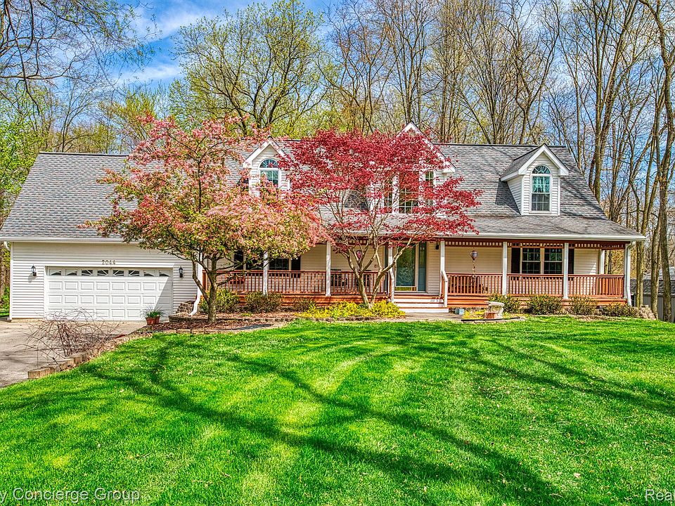 Nestled within the serenity of private & wooded 1-acre lots, this charming Cape Cod residence offers an idyllic retreat. Set against a backdrop of lush greenery, the home boasts a spacious 2132sqft layout across 1 1/2 stories, blending comfort w/nature seamlessly. Welcoming you w/ a covered front porch, it invites moments of relaxation and tranquil contemplation. A large back deck, accessible from the kitchen via doorwall, provides the perfect venue for al fresco dining or enjoying surroundings. This property features thoughtful amenities including a shed, second garage & generator hookup. Inside, discover the warmth of 3 fireplaces dispersed throughout, found in the family room, living room & luxurious primary bedroom. Kitchen offers endless counter & cabinet space, w/ counter seating & breakfast nook overlooking the property. Enjoy countless entertaining options in the formal dining room. The main floor laundry enhances practicality, while the expansive primary bedroom offers a haven of comfort w/ its generous proportions, walk-in closet & ensuite bath. Entertaining is effortless w/ a 1300 sq ft finished basement, complete w/ a versatile rec room, workout area, non-conforming office & additional family room. Upstairs, a charming loft area extends the living space, providing a cozy spot for reading or unwinding. Upstairs bedrooms are spacious & offer endless natural light. Conveniently located near downtown Howell, residents can easily access a vibrant array of cultural events, from concerts at the courthouse to the excitement of the annual balloon festival. With nearby parks and excellent schools enhancing the appeal of the neighborhood, this property epitomizes the perfect blend of tranquility, convenience, and community.