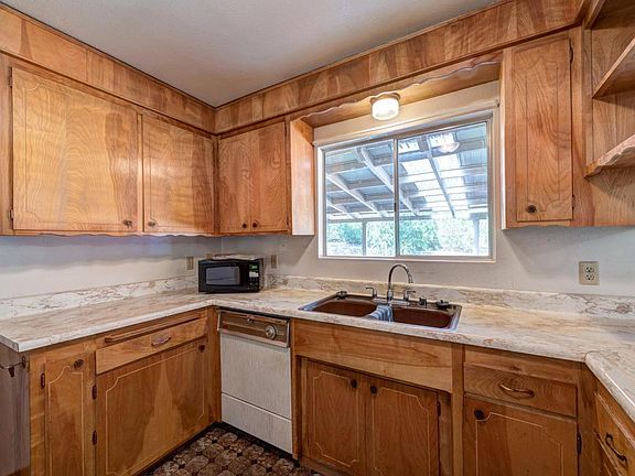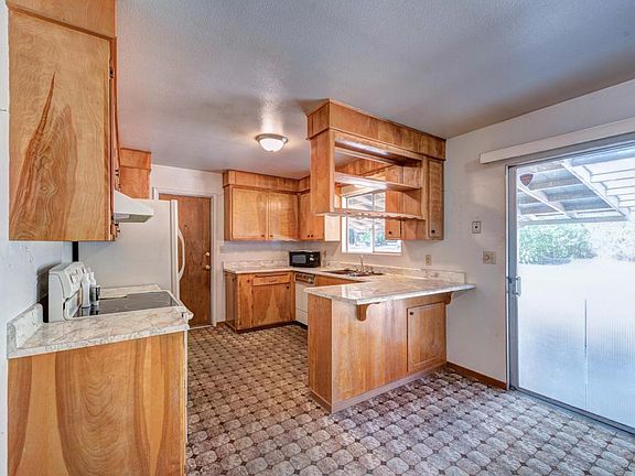 Original decor but all in good shape. Large bedrooms (like they used to built them), vinyl siding, newer roof, huge backyard with large shade trees. Need some TLC. Hardwood floors underneath carpet in livingroom.