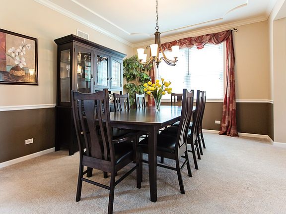 PREPARE TO BE IMPRESSED! You'll love this light and bright 4 bedroom plus 1st floor office home. It offers an open floor plan that's perfect for entertaining AND everyday living. You will find this home has been meticulously cared for by its owners. The living room is adjacent to the dining room with crown molding and tray ceiling. The family sized kitchen with hardwood flooring has lots of cabinetry, granite counters, tile surround, large center island and walk-in pantry. The kitchen flows into the inviting family room with hardwood flooring and built in surround sound. The two story family room with cat walk features plenty of windows to let in natural light, brick fireplace and recessed lighting. The spacious 1st floor laundry room provides plenty of storage and the washer and dryer are included. The home also includes a 1st floor versatile office/den/playroom/hobby room. The master suite has a vaulted ceiling, his/her walk-in closets and luxury bathroom complete with separate whirlpool tub and shower, dual sinks and tile flooring. The Jack and Jill hall bathroom has dual sinks and tile flooring. Huge hallway linen closet. Generous sized secondary bedrooms complete the 2nd floor. The full finished basement adds tons of extra living space including a recreation area, wet bar, extra bedroom, workout room and still plenty of room for necessary storage. The outside of the home is just as impressive as the inside with an adorable front porch, beautiful landscaping and fully fenced backyard with brick paver patio, paver wall and lighting. Newer roof (2016), windows (2015), front/back door (2015), a/c and furnace (2016), newer carpet, light fixtures and landscaping. Students attend the highly acclaimed School District 308. The home is located in the sought after and very well maintained Wheatland subdivision. Located within the neighborhood is the Fox Valley District Wheatland Park which has a playground, soccer fields, baseball fields, basketball court, indoor bathrooms, skate park and is part of the bike path.