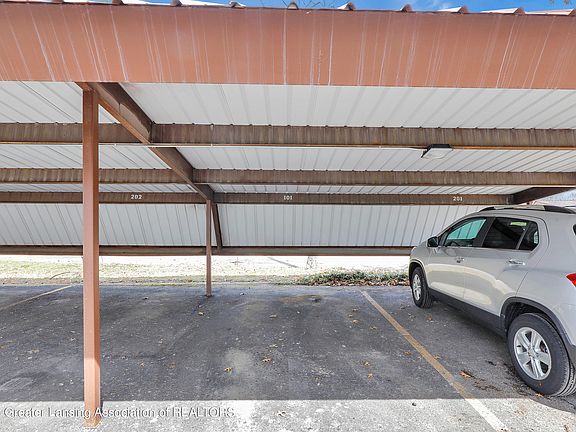 1st level 2 bedroom, 1.5 baths condo located in the heart of Okemos. Close to shopping, restaurants, bus line, and minutes from downtown Lansing and MSU. Private entry enters into nice sized living room featuring cozy wood burning fireplace. Eat-in dining space with galley kitchen and slider access to private patio. Bedroom with access to another walk-out patio on opposite side of unit is perfect for an office option. Full bath with tub in main hallway. Primary 2nd bedroom includes another private half bath. Additional features of unit include covered carport, laundry in building next door, and storage locker in basement perfect for bikes. Must be owner occupied.