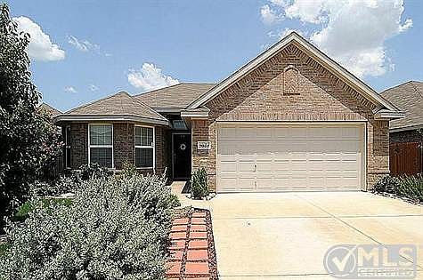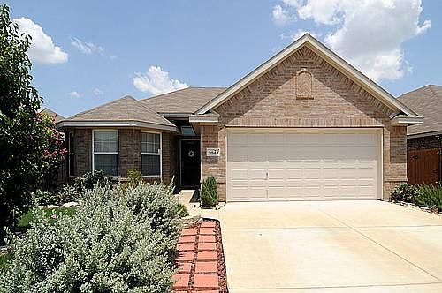 Almost NEW 2009 3 bed 2 bath home. Open floor concept with large living room and kitchen with ceramic tile floors, real wood cabinets, bay window breakfast nook and energy star appliances. Master bedroom is split from secondary bedrooms. French doors take you into the large master bath with garden tub, walk-in shower and huge closet! Beautiful landscaped front yard with pebble and pavestone accents. Great home for any family and move-in ready! Brokered And Advertised By: CHASE REALTY DFW Listing Agent: CHASE HALL