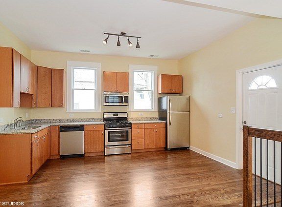 SPACIOUS !! BRIGHT !! MOVE IN READY !! GUT REHAB !! EVERYTHING BRAND NEW !! Open Floor plan, Hardwood Floors, SS Appliances ,Granite Counters , New Plumbing, Electric,Central air & heat**Good size bedrooms. Walk to everything: Shopping , restaurants, transportation**Great value for your $$ in this LARGE beautiful Single Family House !!! --Nice Logan Sq location !** EXTRA LARGE BRICK GARAGE *** BONUS 2 BED/1 BATH IN LAW APARTMENT ON 1ST FLOOR ***