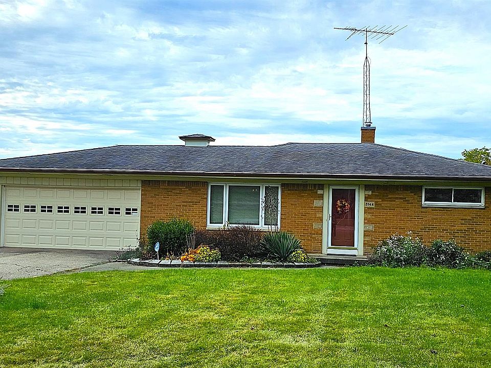 This all-brick ranch home is just waiting for its new owners. It has 2 bedrooms, 1 bath and 2 parcels, to make almost 2 full acres of land. It has an enclosed porch in back, a full, unfinished basement, an attached 2 car garage, a small shed and a fenced back yard, all in a great location, close to all the amenities you need. Hurry, come see this awesome home today. Sale includes 2044 Elms rd and 2036 Elms rd vacant land.