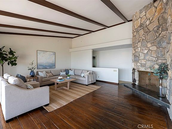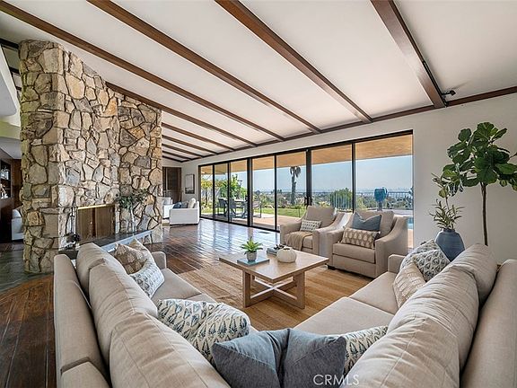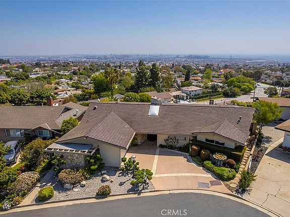 This custom home is tucked away at the end of a quiet cul-de-sac, offers expansive city and harbor views, and captures the qualities of an entertainer’s home. A curved stone double-fireplace is a stunning focal point of the entry. Just beyond are family, living, and dining rooms which seamlessly flow to the backyard; all showcasing the captivating view. This home was designed for entertaining, with its easy flow between living areas and the backyard and pool. A wealth of storage, and a wet bar are hidden in the hallway to facilitate entertaining and family living. The primary bedroom is located on the view-side of the home with easy access to the backyard and pool through sliding glass doors. The large primary bedroom has a grand bathroom with a soaking tub and separate shower, double sinks, a dressing table, and an additional, private passage to the backyard. This 2629 sqft., 3-bedroom, 3-bathroom, home includes a laundry room with direct entry to the 2-car garage. Live away from the hustle and bustle and be minutes away from shopping and restaurants with easy access to Rolling Hills, the greater South Bay region, and to freeways/ bridges linking you to Los Angeles, Long Beach, and beyond.