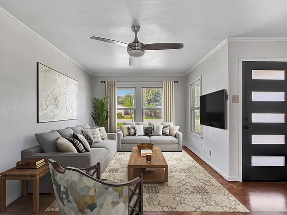 Charming modern ranch style home in Old Spring Branch zoned to great schools Welcome to this well-maintained 3 bedroom, 1+1/2 bath and 1-car garage. The property features a freshly painted interior, newly repaired and painted siding, and fairly new HVAC. The home offers a comfortable layout with a spacious living and dining area with two storage closets for linen or china plates, and a bright sunroom that's perfect for reading or relaxing. The kitchen provides ample cabinetry and counter space, while the convenient indoor utility room adds practicality to daily living. Generous front and back yard currently being landscaped, ideal for gardening or entertaining. This home is ready to welcome its next residents.