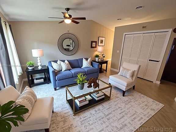 Spacious 2-bedroom, 2-bath villa-style condominium in the heart of Miami Gardens. Features a beautifully updated kitchen with granite countertops, ample cabinet space, and a breakfast bar. Enjoy a large screened patio overlooking a private fenced backyard—perfect for relaxing or entertaining. The home includes tile floors throughout, a walk-in closet, and in-unit laundry. Two assigned parking spaces conveniently located near the entrance. Quiet community close to major highways, shopping, and dining. Roof is 3 years old.