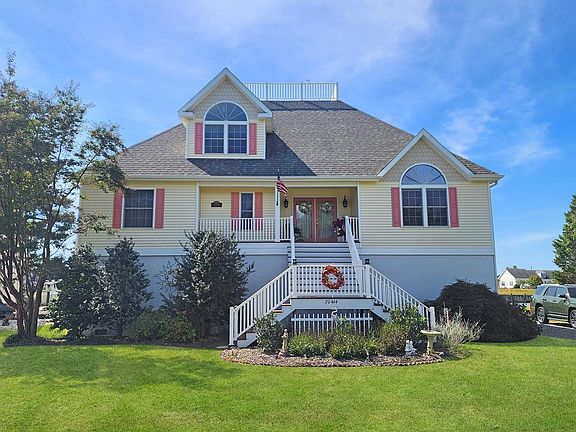 Exceptional waterfront dream home with quick access to the Chesapeake! Whether you are looking for a weekend escape from the city or a place to call your forever home, 20444 Baldpate Lane checks the box. The ground level is a substantial multi-car garage, utility room and workshop. The main living level features a great room with vaulted ceilings, large windows and gas fireplace. This level also features a spacious kitchen with gorgeous natural wood cabinets, granite counters and SS appliances. There are 2 well-appointed bedrooms, a full bathroom and a laundry room as well. Along the rear of the home, you enjoy your time on the screened porch that stretches the entire span of the house. The top floor is a massive primary suite with a walk-in closet, ensuite bathroom and waterside balcony.