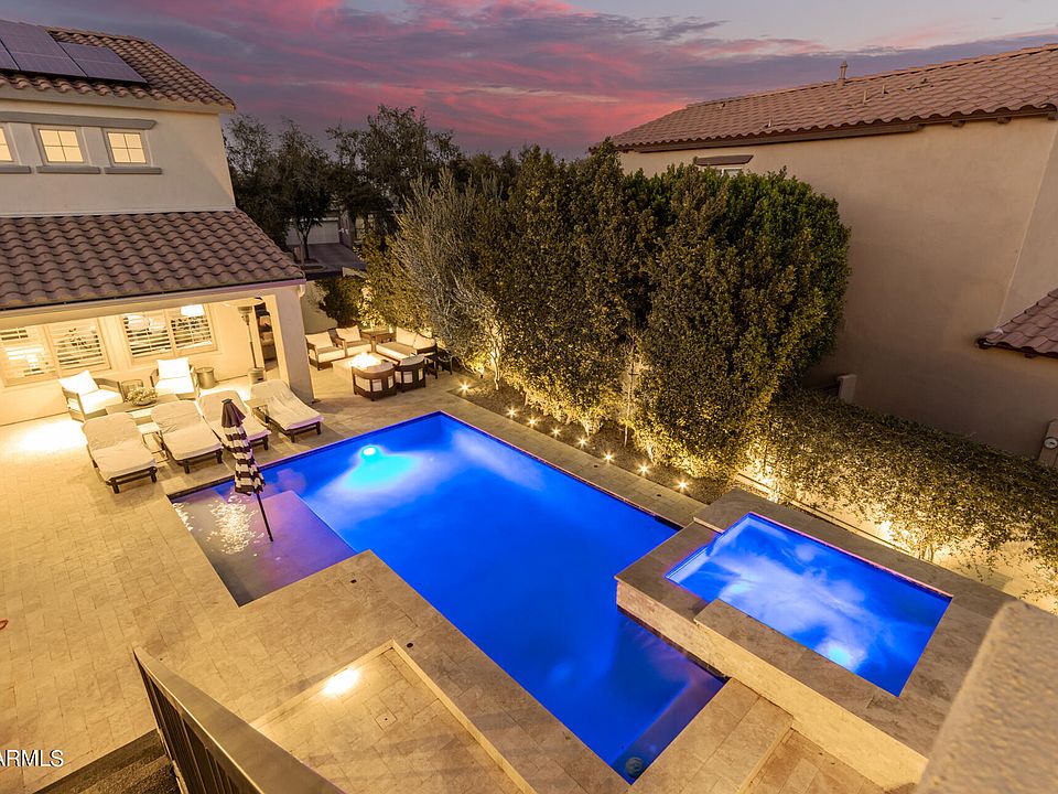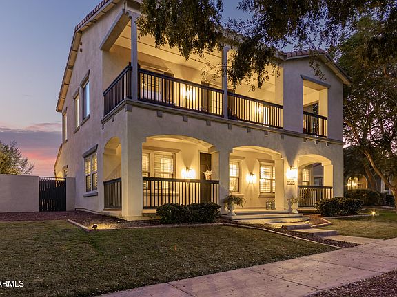 Prepare to be amazed! Check out this fantastic 5 bed, 3.5 bath residence now for sale in the prestigious Community of Verrado! Stunning curb appeal, a large front yard w/lush natural turf, a 3 car garage w/back alley access, and a welcoming porch are just the beginning. Discover a spacious living area w/soaring ceilings, tile flooring, and plantation shutters. You'll also find a formal dining room w/tray ceilings, ideal for hosting a dinner party! The gourmet kitchen is comprised of painted cabinetry w/crown moulding, granite counters, stainless steel appliances such as dual wall ovens, a prep island, and a breakfast nook. The primary bedroom showcases a walk-in closet and a full ensuite w/dual sinks for added comfort. The upper level boasts access to a lovely balcony, where you can sit back and enjoy a relaxing afternoon. Don't forget about the cozy den, perfect for an office or reading nook! Detached casita also includes their very own kitchenette for the convenience of your guests. Lastly, the wonderful backyard features a covered patio, extended seating area w/a fire pit, and a sparkling blue pool/spa combo! The home of your dreams is here, hurry and act now before it's gone!