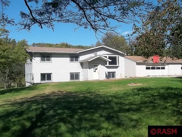 Large split level home sits on 3.5 acres on the Le Sueur river. Upper level features; living room, dining room, kitchen 3 season porch with doors to back yard deck, 3 bedrooms and a bath. Lower level has family room two bedrooms, bath and is a walk out to the back yard. Some finishing work is needed in the lower level. There is also a 2+ detached garage and a shed.