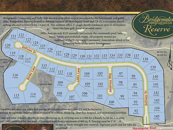 New Cul de sac lot located on the 18th fairway within Bridgewater Reserve. One story home minimum sq ft 2,200. Two Story min. 3,000 combined plus a 800 sq ft garage. Low HOA dues with access to a community pool, tennis/pickleball courts.