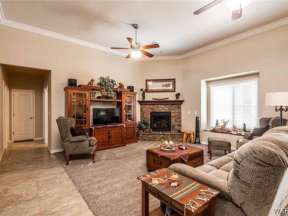 JUST LIKE NEW BUT BETTER* 1.07 ACRE PROPERTY WITH INCREDIBLE VIEWS FROM THE FRONT AND THE BACK YARD OF THIS PROPERTY*HIS HOME WAS RECENTLY BUILT IN 2017 WITH 2400+/- SQ FT OF LIVING SPACE AND A 811 SQ FT GARAGE SPACE* PLUS ALL THE EXTRAS HAVE ALREADY BEEN COMPLETED AND PAID FOR* INCLUDING A $27,000+/- PRIVACY BLOCK WALL, A WATER SOFTENER, REVERSE OSMOSIS *WINDOW COVERINGS*RV PARKING WITH FULL HOOKUPS*TWO TONE EXTERIOR FINISH WITH STONE ACCENT*GORGEOUS LANDSCAPING W/DECORATIVE CRUSHED ROCK, MATURE TREES AND SHRUBS*DEEP CONCRETE DRIVEWAY FOR EXTRA PARKING* RV GATES* FLAT TILE ROOF* RAIN GUTTERS*** INTERIOR FEATURES: 10' HIGH, HAND-TEXTURED CEILINGS* FORMAL ENTRY* 20" CERAMIC TILE FLOORING*CROWN MOLDING* CEILING FANS THROUGHOUT*SPACIOUS LIVING ROOM WITH LARGE VIEW WINDOWS & FIREPLACE REAL STONE VENEER*WINDOW COVERINGS THROUGHOUT*VERY OPEN FAMILY FRIENDLY KITCHEN WITH A LARGE BREAKFAST BAR, GRANITE COUNTER TOPS,HUGE AMOUNTS OF CABINETS WITH SLIDE OUT SHELVES & HANDLE/HARDWARE, LAZY SUSAN,LARGE WALK IN PANTRY, UPGRADED STAINLESS STEEL APPLIANCES & POT SHELVES*DINING AREA OFF THE KITCHEN HAS PLENTY OF ROOM FOR A LARGE FORMAL DINING TABLE ALSO HAS AN EXIT DOOR(WITH BLINDS INSIDE THE DOOR) TO THE REAR COVERED PATIO* SEPARATE FAMILY ROOM/OR A FORMAL DINING ROOM* KING-SIZE OWNERS SUITE WITH BAY WINDOWS,EXIT DOOR TO COVERED PATIO & COZY CARPET* OWNERS SUITE BATHROOM HAS TILE FLOORING, LARGE WALK IN TILE SHOWER, AQUATIC GARDEN TUB WITH TILED BACH SPLASH & DUAL VANITIES* THERE ARE 3 SPACIOUS GUEST BEDROOMS(1 CAN BE USED FOR AN OFFICE WITH FRENCH DOORS)* GUEST BATHROOM HAS DUAL VANITIES, GRANITE COUNTER TOPS, A DOOR SEPARATING THE COMMODE AND THE VANITIES & A FULL BATH/SHOWER COMBO*INTERIOR LAUNDRY WITH CABINETS, SHELVING, GRANITE COUNTER TOPS WITH A HALF BATH OFF THE LAUNDRY ROOM*ALSO INCLUDES A WATER SOFTER AND A REVERSE OSMOSIS*THE 3 CAR TRUCK DEEP GARAGE HAS BUILT IN SHELVES AND THE WHITE CABINET STAY WITH THE HOME PURCHASE* 6-8 PANEL DOORS THROUGHOUT*50 GALLON WATER HEATER WITH WATER BOOSTER PUMP* LARGE COVERED PATIO*THE BACK YARD HAS NATURAL LANDSCAPING AND AMAZING VIEWS OF THE CITY LIGHTS* THE STOVE, BBQ & FIREPLACE ARE PLUMBED FOR PROPANE IF NEEDED*YOU CAN ENJOY FOREVER VIEWS OF THE HUALAPAI MOUNTAINS FROM THE FRONT OF THIS PROPERTY BECAUSE THE PROPERTY ACROSS THE STREET IS A WASH*THIS IS A WONDERFUL PLACE TO CALL HOME* CALL FOR SHOWING INSTRUCTIONS*