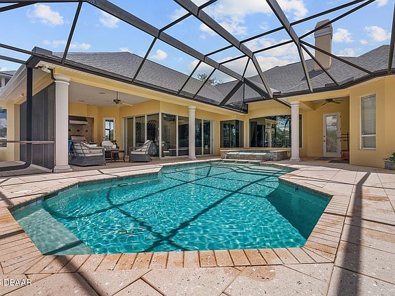 Exquisite Arthur Rutenberg pool home on the 14th fairway of the King & Bear Golf Course! Set on an oversized lot, this concrete block residence features 12-ft ceilings, a curved glass window with panoramic views, and a gas-heated saltwater pool/spa with screened lanai & summer kitchen. Inside: crown molding, built-ins, formal study, stone-faced fireplace, and a gourmet kitchen with GE stainless appliances, warming drawer & cooktop. The private primary suite offers a bay window sitting area, 2 walk-ins, and a spa-like bath. Flexible 4th bedroom/TV lounge with bar. Upgrades: new roof (2022), extended paver drive, 3-car garage (1 bay as golf studio), surround sound, security system, tankless water heater, and more. Enjoy resort-style amenities—fitness center, pools, tennis, pickleball, trails, parks, and the Jack Nicklaus/Arnold Palmer course. Meticulously maintained—schedule your tour today!
