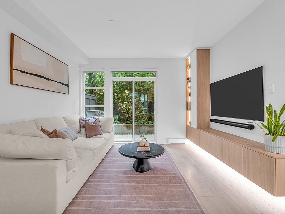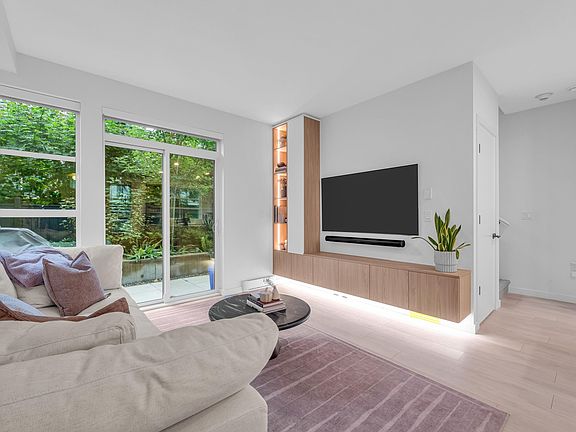 Modern living meets nature in North Vancouver! This is Eastwoods by Anthem, a beautiful 1500sf 4 bed plus den townhouse with open layout and lots of sunshine! Enjoy a gourmet kitchen featuring Bosch and Fisher & Paykel appliances, a custom build banquette dining area, a spacious living room that lead to a large outdoor patio perfect for summer BBQs. Second floor has two spacious bedrooms and a family room with custom cabinets, perfect for movie nights. Third floor with a Primary bedroom with walk-in closet and a bedroom with a custom office/murphy bed! This home comes with 2 parking and 1 storage! Located just minutes to Seymour River Heritage Park, trails, Northwoods village, shopping, and schools. The perfect blend of style, comfort, and outdoor lifestyle! *Oct 25 2-4pm, Oct 26 2:30-4pm*