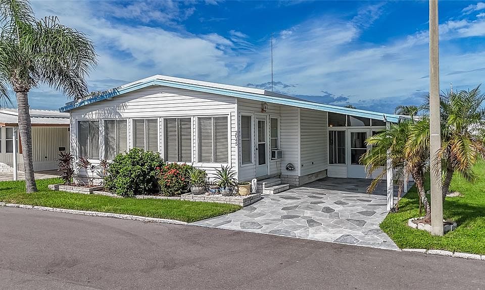 OWN THE LAND! No lot rent and low HOA in Lake Conley, a coveted 55+ gated waterfront community in Holiday, Florida. This charming fully furnished home features a spacious open layout with living room, dining area, and kitchen flowing effortlessly together. Enjoy a bright and versatile Florida Room/Office at the front, adding 223 sq. ft. of additional living space, plus a screened side lanai perfect for relaxing or entertaining. Both bedrooms are generously sized with walk-in closets, and the home offers two full bathrooms. A one-car carport provides convenient covered parking, and there is ample storage space, including a dedicated area with washer and dryer. Lake Conley offers an active, social lifestyle with a heated community pool, shuffleboard courts, private boat ramp, and clubhouse hosting regular events. Golf carts are welcome, making it easy to explore the community. One small pet is allowed (under 25 lbs), and seasonal leasing is permitted (2-month minimum). Just 15 minutes from beautiful beaches and close to nature trails, shopping, dining, and entertainment, this home combines comfort, convenience, and community. Don’t miss your chance to enjoy the sought-after Lake Conley lifestyle—schedule your showing today!