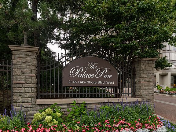 Welcome to Toronto's luxury landmark high rise, Palace Pier, located on the shore of Lake Ontario. Rarely available, this 1,890 sq.ft. three bedroom, two and a half bath residence is move in ready. Upon entering, to your right, the first or primary bedroom or bonus room, is spacious, and totally private from the rest of the suite. A three piece bath, with walk in shower completes this area. A separate wing, if you will. Proceeding down the hall into the principle living area, floor to ceiling windows frame the views of parkland, the Humber River, particularly beautiful in Autumn and partial view of the city skyline. The living and dining rooms size is accentuated by the open concept kitchen, oversized Caesarstone preparation island, surrounded by German manufactured, white acrylic cupboards and drawers, lots of them, and upscale gleaming Samsung and Bosch S/S/appliances. The kitchen counter has been extended to the dining area for additional storage, bar and wine fridge. The backsplash is unique. Punched stainless steel which compliments the white granite counter tops. Engineered floors of Honey Bleached Oak, easy to maintain, are throughout. The other "primary" ensuite, depending on which you choose, has been made into a mini spa with soaker tub, walk-in rain shower and Icera, toilet/bidet. The additional bedroom is bright and cozy adjacent to a two piece powder room. The full sized LG washer and dryer, have been removed from the kitchen and now tucked away in the hall giving easier access. All this along with grand lobbies and ***** Five Star Amenities: Concierge, 24 hr. security, Valet parking, Private Shuttle to City, Restaurant, Tennis court, BBQ's, Guest Suites, Full service spa, Sports simulator, Gourmet shop, State of the art gym and much more.