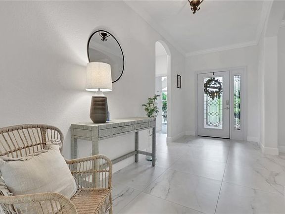 This recently remodeled Princeton II model, constructed in 2016, offers four bedrooms and two bathrooms and a heated pool and spa with a picturesque lake view. Positioned near the end of a cul-de-sac, the residence is in an X FLOOD ZONE which features a lot that affords additional space and enhanced privacy. Notable upgrades completed in 2022 include elegant 24x24 tile flooring throughout, premium carpeting in each guest bedroom, custom closets in all bedrooms and the pantry, modern window coverings, new baseboards and trim, as well as refreshed interior paint throughout. The master suite provides direct access to the pool area, a spacious walk-in custom closet, and a generously sized bathroom featuring a soaking tub and separate shower. The open-concept kitchen and great room are designed to maximize enjoyment of western exposure sunsets. Dining options include both an informal dining area for everyday meals and a formal dining room suitable for special occasions. Additional amenities consist of a three-car garage with ample storage and a paved driveway. Residents benefit from exceptional community amenities with low HOA fees, encompassing two resort-style pools and spas, basketball and tennis courts, playgrounds, a splash pad, clubhouse, fitness center with a children’s play area, sand volleyball, and a fishing pier. This is Naples real estate at its best—whether you're looking for a family home, second home, or investment property, this one checks all the boxes.