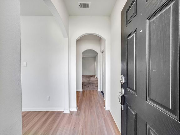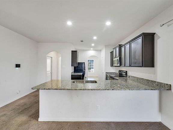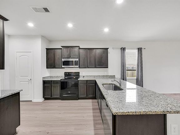 Charming one-story home with no back neighbors located in the desirable Freeman Ranch community. Step inside to find an inviting open-concept layout featuring high ceilings, great natural light, 3 bedrooms, and 2 full baths. The kitchen offers ample cabinet space, granite countertops, recessed lighting, and breakfast bar seating. The kitchen connects seamlessly to the family room, idea for everyday living and entertaining. Formal dining room/flex room upon entry. The private primary suite features a soaking tub, separate shower, and a generous walk-in closet. Enjoy outdoor relaxation under the covered patio with added privacy as the home backs to peaceful community green space. Zoned to Katy ISD schools.