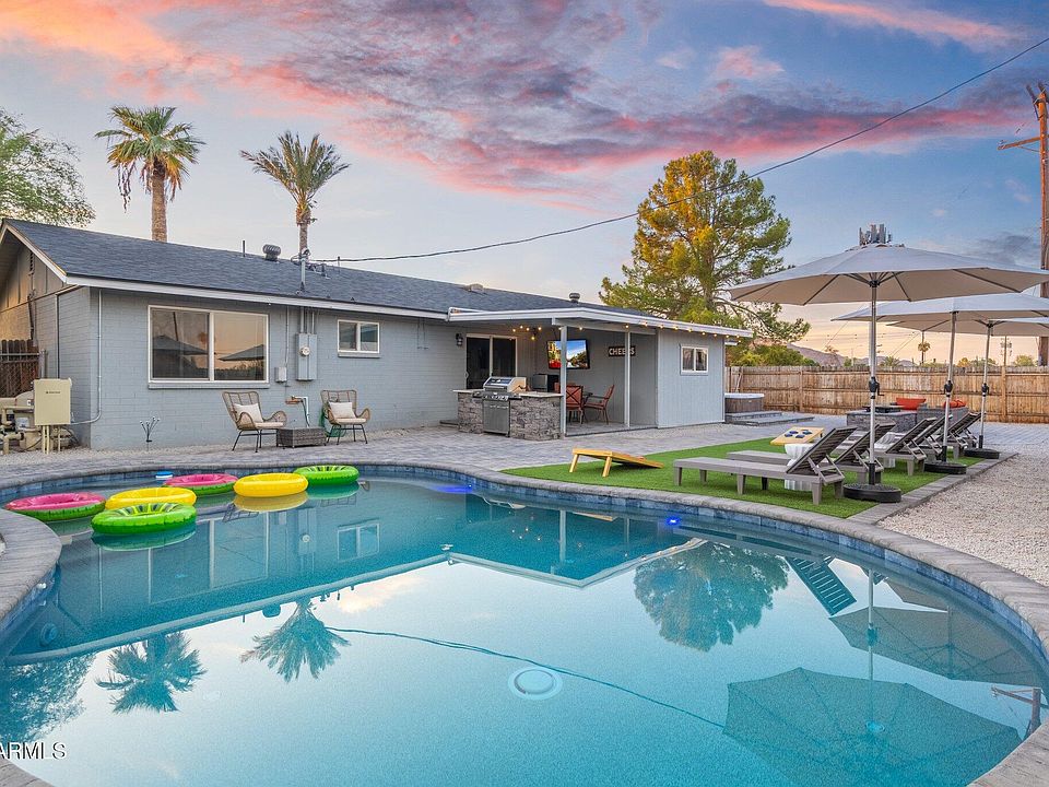 Prime South Scottsdale location! This beautifully updated home is available fully TURN-KEY and move-in ready. Situated in the heart of South Scottsdale, just minutes from Old Town Scottsdale, Papago Park, The Phoenix Zoo, Desert Botanical Gardens, ASU, and Sky Harbor Airport. Currently operating as a short-term rental, this property is ideal for investors or buyers seeking a furnished ''ready-to-go'' home. Just bring your toothbrush! Inside, the single-level ranch layout offers 3 spacious bedrooms PLUS a versatile bonus room currently set up as a 4th bedroom. (Perfect for additional guests, a home office, or flex space). The home features two fully remodeled bathrooms and a highly desired two-car garage. The open-concept kitchen impresses with crisp white shaker cabinets, stunning quartz countertops, stainless steel appliances, and durable wood-look tile in all the right places. Recent upgrades include a brand new "heated" saltwater pool, new AC system (2024), full roof replacement (2022), and newer dual-pane windows. Step outside to your own private "resort style" retreat andunwind by the cozy fire pit, or fire up the built-in BBQ for a perfect evening under the stars. Enjoy a peaceful morning sipping your coffee while taking in the serene mountain views of Camelback from your own backyard.