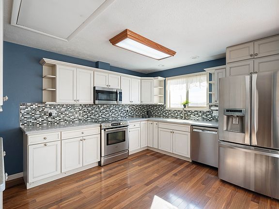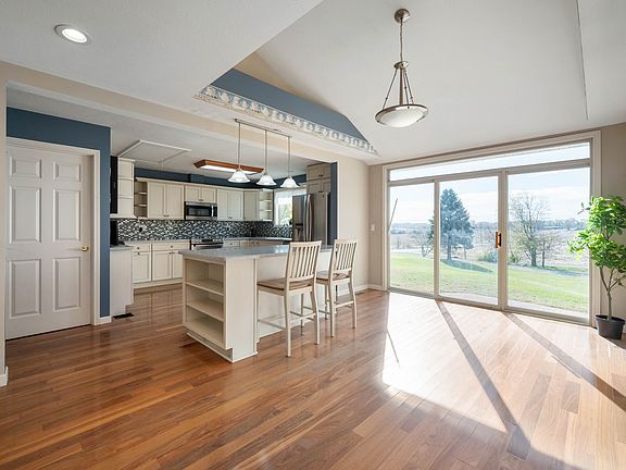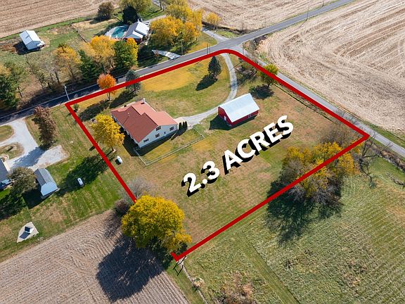 Welcome to this spacious 2,857 SF one-story home featuring 3 bedrooms, 2.5 bathrooms, and a partial basement. This property blends comfort, charm, and functionality with hardwood flooring, cedar-lined closets, cozy wood-burning fireplace, formal dining room, convenient laundry area, and a fully updated kitchen with sliding doors that open to a lovely brick patio. Perfect for entertaining or relaxing outdoors. The primary suite includes a private home office, bathroom with a soaking tub, large walk-in shower, and a walk-in closet. The attached two-car garage provides ample storage and includes an unfinished bonus space above, offering great potential for future expansion. Situated on a 2.3-acre lot, the yard also features a fenced-in area and a large barn with updated metal siding and roof. Move-in ready with appliances included: Refrigerator, Electric Range, Dishwasher, Microwave, Washer and Dryer.