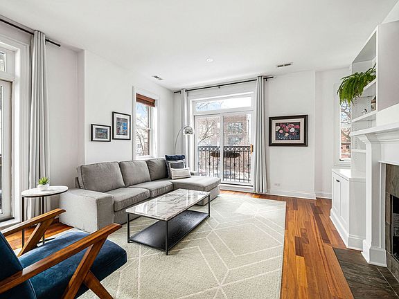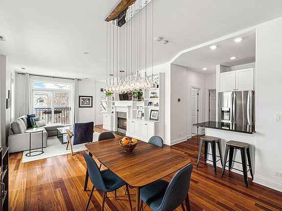 Bright and inviting, this stunning 2BD/2BA corner condo in the heart of Logan Square offers an ideal blend of comfort and style. With its sought-after south-facing exposure, this home is filled with natural light, highlighting the soaring ceilings and split open-concept design-perfect for both relaxing and entertaining. The spacious living and dining area is designed for seamless indoor-outdoor living, featuring a balcony for grilling, an additional Juliet balcony, and a charming gas fireplace framed by elegant white built-ins with ample shelving and cabinet storage. The modern white kitchen features a sleek glass backsplash with all newer stainless-steel appliances, including a double oven. Retreat to the generously sized primary suite, complete with a spacious walk-in closet and ensuite bath with a dual vanity and walk-in steam shower. Additional conveniences include a newer in-unit washer and dryer, newer HVAC, newer water heater, updated paint, light fixtures, and hardware in both bathrooms. This well-maintained building with a very strong HOA offers fantastic amenities, including a private storage unit, fitness room, bike room and gated exterior parking space! Situated in a prime location, just a short walk to the CTA Blue Line, renowned restaurants, parks, the 606 trail, and all the vibrant entertainment Logan Square has to offer. A must-see for those seeking a stylish and convenient city lifestyle.