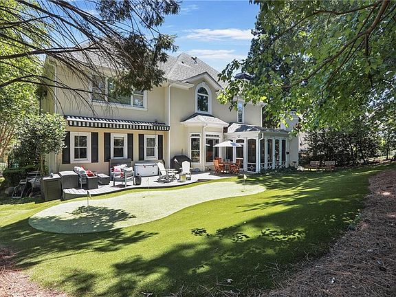 An exciting and rare opportunity on Northwick Pass, the most coveted manor street in the prestigious gated community of Country Club of the South. This charming hardcoat stucco home offers all the features of a larger residence within a more manageable footprint. The main level, with 10-foot ceilings, features a versatile formal living room or office, a spacious dining room, and a newly renovated, inviting white kitchen with granite counters, stainless steel appliances, and a bayed breakfast area that seamlessly flows into the open family room, anchored by a fireplace with gas logs flanked by built-in bookcases. The outdoor living spaces include a cozy covered screened porch with a stone fireplace, perfect for relaxing year-round, as well as a beautifully reimagined backyard showcasing a new walkout deck and a covered awning-ideal for outdoor entertaining and enjoyment of the privacy this exceptional setting provides. The backyard also features a state-of-the-art AstroTurf putting and chipping green, perfect for golf enthusiasts looking to lower their handicap. Upstairs, you'll find three generously sized bedrooms, each with ensuite baths. The oversized primary suite offers a sitting area, a large closet, and a fully updated vaulted ceiling bathroom that exudes modern luxury. The terrace level includes an additional bedroom, a full bath, and a rec/media room, making it ideal for casual gatherings and entertainment. This exceptional home seamlessly combines luxurious comfort, functional design, and outdoor leisure in a highly sought-after community.
