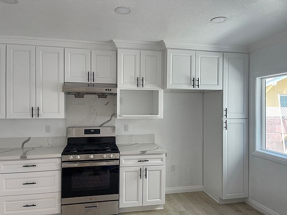 - Newly remodeled kitchen with quartz countertops, stainless steal gas range, and lots of cabinet spaces