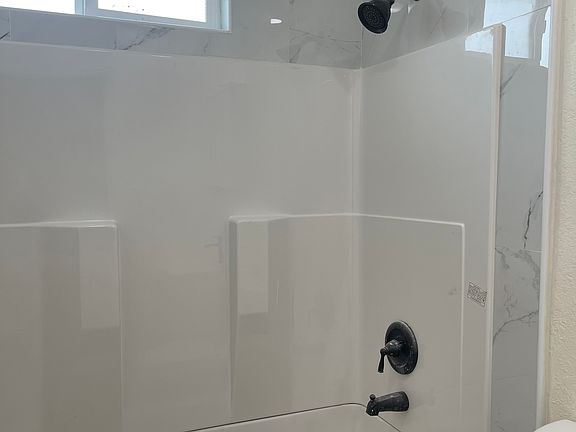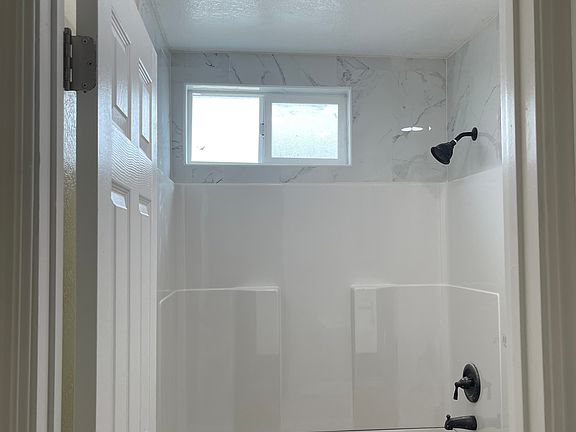- Entire remodeled bathroom with new bathtub, vanity, and flooring.