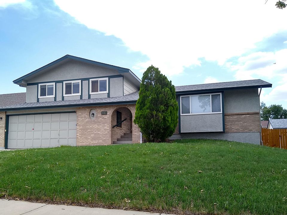 Lovely flow throughout this home! Main floor with open feel and vaulted ceilings, features a living room, dining room, and kitchen. Down a half-flight of stairs brings you to the big family room with brick-clad gas fireplace and built-in shelving. Also on this level is a half bath, washer and dryer, pantry, access to the 2-car garage, and walkout to fenced back yard. One more level down is a great big, open rec room, TV room, or office. On the top level are a full bath with skylight, master bedroom with its own private bath, and two additional bedrooms. Central air conditioning and carpeting! It's a short walk to the Rock Island Trail for biking, jogging, or strolling. Beautiful Pike's Peak views from the front windows. Great neighborhood, far enough from main roads to be quiet and close enough to be convenient to shopping, dining, and entertainment.