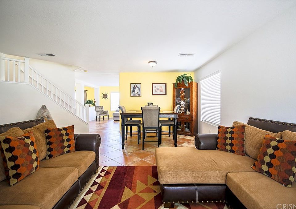 Stunning West Palmdale home, features over 2700 sq. ft of living space with 5 bedrooms and 3 bathrooms. Ground floor features beautiful living areas. As you enter the front door you are welcomed by a nice formal living and dining areas, then you walk into a large spacious family room with plenty of sunlight, gas fireplace and an open concept that exposes a gorgeous kitchen featuring light colors, granite countertops, stainless steel appliances with access to your backyard. All bedrooms upstairs. The stairs and the whole second floor has beautiful natural hardwood floors, light colors and plenty of natural sunlight. The master bedroom is large to accommodate all of your beautiful furniture, the ensuite master bath features dual sinks, granite counter tops, a bathtub, separate shower and a large walkin closet. There's nice landscaping in the front and backyards with great views of the city. Close to shopping, dining, schools, parks, entertainment and freeway access. Don't miss out on this gorgeous turn key home.