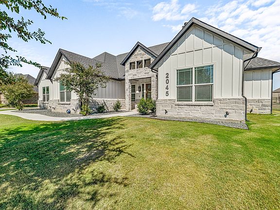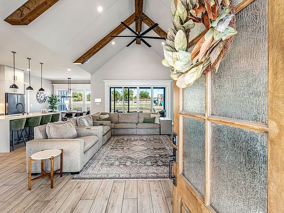 BETTER THAN NEW-FULLY FENCED 1-ACRE+16,500 IN UPGRADES!. Set on a finished 1-acre lot in Elevation Estates, this 2023 custom home already has the big-ticket items that most new construction doesn’t have. The $16,500 in Upgrades includes the Fully fenced backyard $6,000, Driveway extension and sidewalk to backyard $6,000, Rock flowerbeds-$1,000, Water Softener $2,000, Epoxy Garage Floors $1,500. This how also came with blinds which most new homes don't so it is a cost to the new buyers. Welcome to this stunning 4-bedroom, 3-bath home that blends timeless farmhouse charm with sleek modern design. This property offers peaceful living with thoughtful upgrades throughout. Step inside to find a bright, open-concept layout featuring vaulted ceilings with exposed wood beams, wood-look tile flooring throughout most of the house, and a cozy modern wood-burning fireplace framed by built-in cabinetry. The chef’s kitchen showcases a large quartz island with a waterfall edge, a large walk-in pantry, stainless steel appliances, and abundant cabinetry for storage. The spacious primary suite has a modern feel and connects conveniently to the laundry room, which includes a built-in sink, cabinets and large closet for storage and it also has its own dedicated HVAC. You’ll also love that the home has large walk-in closets, and the epoxy-coated 3-car garage offering durability and style. The house also comes with a water softener. Outside, enjoy a covered back patio perfect for entertaining and a s a fully fenced backyard, with 2 double gates, and is also cross-fenced in the back area of the yard which makes it ideal for chickens or small animals. A perfect setup for anyone craving a touch of country living with modern convenience. Experience the best of country living just minutes from town. HEB & Walmart are 15-20 minutes, Marys Cafe is 5 minutes down the road, Weatherford schools are about 15-20 minutes. Welcome Home!