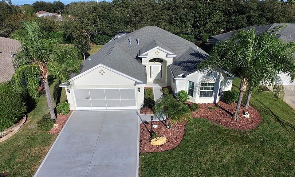 Beautifully Updated "EXPANDED-Lantana" in the Village of Tall Trees with NO HOMES BEHIND and NO BOND!! This 2,000 sq ft Designer Home sits on a quiet cul-de-sac close to everything! All the shopping & banking on Parr Drive, Southern Trace & Buffalo Ridge Shopping Centers, with a quick golf-cart ride to Laurel Manor Rec Center and Lake Sumter Landing! This home has a Birdcage covered SWIM SPA, Outdoor Kitchen/Bar, Covered Lanai, and BBQ Pad for Great ENTERTAINING! Freshly Painted Stucco Exterior & Custom Driveway and Walkway greet you, along with Red Lava Rock Mulch. Once inside the Magic begins! 2019 LG Blk Stainless Steel Kitchen Appliances, Granite Kitchen Counter-top with Breakfast Bar Over-hang, Built-in Desk, Stone & Metal Back-splash, Corner Cabinet with Glass Insert, and Custom Knobs all enhance this OPEN KITCHEN. The Laundry room houses 2019 Samsung Washer & Dryer, along with a COAT CLOSET, CLOSET PANTRY, and BUTLER's PANTRY/DRY BAR just off the kitchen heading to the 28X22Ft Garage with Custom Painted Floor & pull-down attic stairs. This home has INSULATED INTERIOR WALLS! Surround-Sound Speakers are sprinkled through-out the home, High & Vaulted Ceilings, Custom Designer Ceiling Fans, Textured Walls & Knock-down Ceilings, Pocketing-Sliders, & 6"Baseboards. The Owner's Suite Windows were built so the rear wall would house a King Bed with TV placement on the expanded 42" Plant Shelf. The Bath has a LARGE WALK-IN CLOSET, separate WC, Tiled Shower with Bench, and a "L" Shaped Vanity. A MUST SEE!!