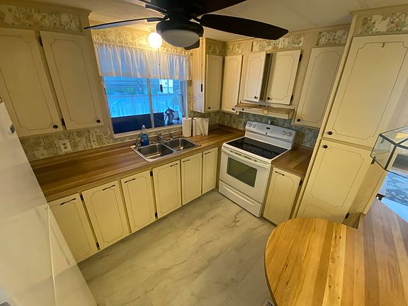 This fully furnished 1982 double-wide mobile home in Dunnellon Square is move-in ready and full of upgrades! Located in a gated 55+ community, this 2 bedroom, 2 bathroom home has been completely remodeled for comfort and style. Key Features: New bathrooms (2023): Both bathrooms have been completely redone with step-in showers, Corian countertops, updated cabinets, new sinks, faucets, and toilets. New roof (2017) New heat pump (2021) New flooring (2021) A/C Blower Motor (2025) : Laminate flooring throughout the home, with the exception of the master bedroom which is carpeted. Enclosed front porch: Features glass windows, and a ceiling fan-perfect for relaxing or entertaining. Upgraded ceiling fans and lighting fixtures throughout the home. Master suite: Includes a walk-in closet, tiled walls in the bathroom, a new laminate floor, updated shower, countertop, and lighting. Dining area includes a built-in china cabinet. Community Features: Low lot rent: $595/month, Clubhouse Pool On-site attendant in the lobby Pet-friendly This is a well-maintained home in a quiet and welcoming community, perfect for relaxed Florida living.