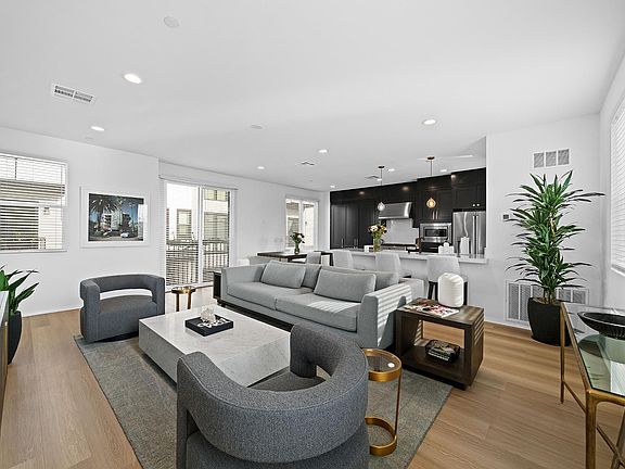 Want to live in Newport Beach in a newly built chic townhome that is close to so much that Newport Beach has to offer? Would you like to live close to Upper Newport Bay, shop at Irvine Ranch Market and be close to fabulous restaurants in Newport and CDM? This end-unit townhome may be just what you're looking for! Built by Matt White Custom Homes with modern farmhouse styling, it offers an open concept floor plan with an amazing and customized kitchen opening to the great room, 2 upstairs ensuite bedrooms and a convenient first floor powder room. A direct access 2 car garage opens in the entry hall which then opens onto a quaint, wrap-around patio with a perfect area to store your surfboards, electric bikes and more. The main living area has high ceilings and lots of oversized windows streaming in natural light. The amazing kitchen has been customized with added storage, which you can never have enough of and boasts dramatic black cabinetry with gold accent pulls, stainless steel GE Cafe appliances, designer selected Quartz counters and an Elkay farmhouse sink. Beautiful Provenza luxury LVP flooring can be enjoyed throughout along with crisp white walls complemented by black trimmed Milgard dual pane windows. The primary suite has a walk-in closet and a spa-inspired bathroom with a generous vanity, dual sinks, towel cubbies and an oversized walk-in shower. The second bedroom suite has a bath with a tub/shower combination. Great views of the Santa Ana Country Club can be enjoyed from the primary suite and as you leave the top level towards the main living area. Additional amenities include Kohler Purist plumbing fixtures, LED lighting, a newer front loading washer and dryer, tankless water heater, on-site guest parking and a home warranty. Ideal location for those who travel a lot since its close to John Wayne airport. Its move in ready and available immediately.