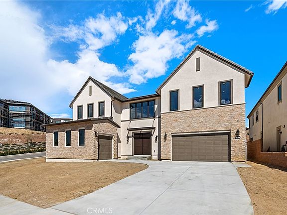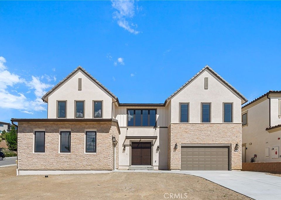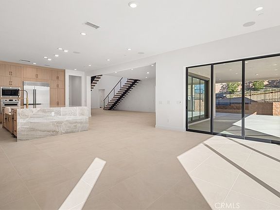 Brand new construction by Toll Brothers, Skyline Collection at Westcliffe - an exclusive gated, hillside living community in Porter Ranch. Final opportunity to purchase direct form the builder. This home has been professionally curated by our award-winning interior design team just for you, including cabinets, hardware, countertops, backsplash, shower tiles and gorgeous matte porcelain 24”x24” tile flooring at first floor! The very popular Sunset Floor plan with a Modern Farmhouse exterior, features a dramatic foyer with double floating glass staircase and soaring 20' ceilings, leads to the spacious great room featuring an upgraded 72” linear fireplace and four large multi-panel stacking glass doors that brightens and opens the great room and dining room up to the enormous covered L-shaped luxury outdoor living space, perfect for indoor/outdoor lifestyles and entertaining. The well-designed gourmet kitchen is equipped with upgraded Wolf appliances and a Sub-Zero refrigerator, a gorgeous large center quartzite island with a waterfall-edge and breakfast bar, plenty of quartz counter and cabinet space going all the way up to the ceiling, stunning satin bronze cabinet pulls, and ample walk-in pantry with glass door. The primary bedroom suite features an oversized, palatial walk-in closet with natural light from multiple windows, a primary bath with dual vanities, large soaking tub, luxe shower with seat and private water closet creating a tranquil, Zen vibe like none other. Central to the loft on the 2nd floor, the generous-sized secondary bedrooms feature sizable closets and en-suites. Additional highlights include a desirable first floor bedroom with large closet and private bath with standing shower, first floor office, convenient powder room and drop zone, 2nd floor laundry, and additional storage. Home is complete with 2 car garage entering at the kitchen drop zone and separate 1 car garage entering at the office/first floor bedroom hallway. With a SunPower solar system, upgraded electrical options throughout, and Toll Brothers warranty included-this is a must see! This home is complete and ready for immediate move in!