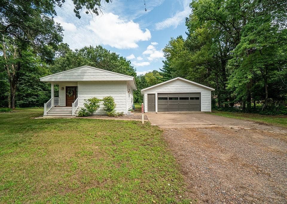 Nestled along the Yellow River, this charming 2-BR, 2-BA Wis. home offers a serene escape on 1.2 acres of tranquil land. With an impressive 185 feet of frontage, privacy is assured for those seeking a peaceful retreat. Step inside and be greeted by the warmth of white oak wood floors, adding a touch of elegance to the nicely updated interior. The layout invites comfort and relaxation, and the expansive wood deck is perfect for dining or simply soaking in the natural surroundings. The gradual bank leading to the river provides easy access for waterfront activities, while a level area along the river offers an ideal spot for a cozy fire pit or additional seating area. This property strikes a harmonious balance between modern comfort and natural beauty. Its convenient location ensures you're never far from amenities while maintaining a sense of seclusion. HVAC new 2020, on-demand water heater 2020. The detached 2-car garage is conveniently located close to the home for easy access.