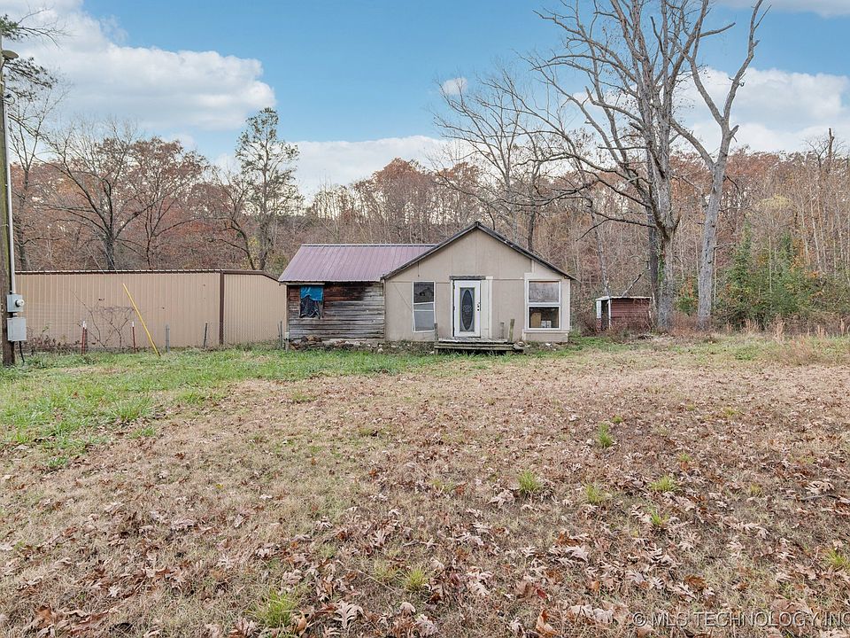 Beautiful partially treed 10 acres of land with a newer (2023) 30x40 detached insulated & plumbed metal shop on cement slab. Secluded and private, yet only 1 mile from town, shops, and eateries. The home is a fixer upper, with high ceilings and a newer metal roof. This home could be fully renovated, or completely torn down. The shop could serve as living quarters while you build! The property has so much potential, close to Illinois river, situated on a quiet county road with lots of mature trees. Immerse yourself in nature, while enjoying all the amenities of the city life! Great potential for a mobile home or tiny home community!Well water, septic, and electric pole on site. No natural gas.