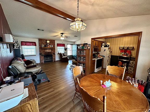 This property truly has it ALL and is located only 3 miles from Altus. It sits on 0.71 acres and has a large 20X40 metal shop with electricity that sits on a 4-inch concrete slab. There is new laminate flooring throughout. You will love the tall ceilings in the living room as well as the gorgeous red brick wood burning fireplace. The living room, dining room, and kitchen are open creating the perfect open concept layout. The master bedrooms is spacious and is complete with a full-on suite bathroom that has 2 vanities and 2 walk in closets. The other two bedrooms are a great size and have good closet space. The backyard is large and fenced. There is a water well, covered back patio, storm shelter, and fenced in gravel yard around the large shop. There is a new metal roof, new windows, new shower/tub, exterior trim that has been painted, faux wooden blinds on all windows, and propane tank that is owned and will stay with the property. You do not want to miss this one!