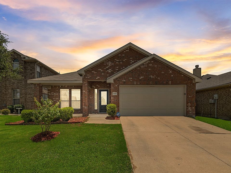 Come see this lovely home located in the Travis Ranch Subdivision. You'll pull up to a lovely covered front porch perfect for watching the sunset in the evenings. Once you walk into this home you'll find a bedroom or a great home office with a walk-in closet. As you continue into the home you'll see the formal dining area then the spacious kitchen overlooking the living & breakfast area. In the kitchen you have stainless steel appliances along with an abundance of countertop space & cabinets. Just off the kitchen area is the primary bedroom with an ensuite bathroom. In the bathroom you'll find dual sinks, walk-in shower, garden tub, & a walk-in closet. On the other side of the home is the other 2 guest bedrooms. Out back you have a private backyard with a wood privacy fence. Don't miss out on this lovely home that is near Lake Ray Hubbard and within the Forney ISD Schools.